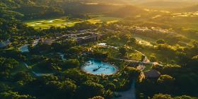 aerial view resort luxury resort tropical lush greenery swimming pool golden hour sunset vacation travel holiday escape paradise nature landscape scenic beautiful serene tranquil relaxation getaway tourism destination hotel buildings architecture foliage trees green blue water sun light golden horizon overview birds eye view drone photography property real estate eco-resortSimilar Photos