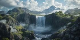 waterfall landscape mountains cliffs valley greenery nature panoramic scenic view beautiful amazing majestic lush vibrant misty clouds sky rocks water environment scenery photography digital art artwork illustration fantasy travel adventure background texture scenic view mountain range waterfall landscape natural beauty outdoor environment ecosystem wildlife habitatSimilar Photos