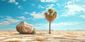 Desert Landscape Palm Tree and Boulder under a Vivid Blue Sky