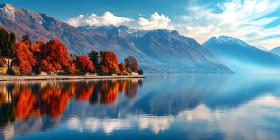 autumn lake mountain mountains reflection red trees sky water landscape scenery nature scenic view beautiful peaceful serene tranquil calm fall colors red leaves foliage autumn leaves vibrant amazing breathtaking picturesque idyllic travel destination holiday getaway explore adventure outdoor environment season panoramic vista photography image sceneSimilar Photos