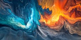 abstract art ice fire collision elements energy power contrast colors texture fantasy dramatic vibrant blue orange painting digital art artwork visual narrative opposing nature creation destruction chaos harmony balance light dark cold hot intensity passion serenity conflict dynamic composition artistic expression imagination abstract background fantasy art powerfulSimilar Photos