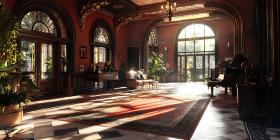 Grand Interior Sunlit Ruins of a Historic Mansion