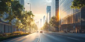Sunrise Cityscape Urban Street Scene at Dawn