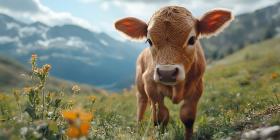 Curious Calf in Mountain Meadow