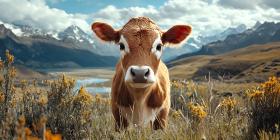 Majestic Calf in Mountain Pasture Scenic Rural Landscape Photogr