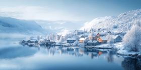 Winter Wonderland Snowy Village Lakeside Scene Scenic Landscape