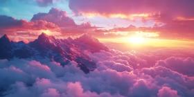 Stunning Aerial View Pink Purple Sunset Above Cloud Sea