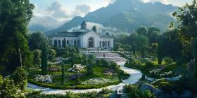 villa mountain estate garden landscape panoramic view lush greenery pathway architecture building nature serenity tranquility luxury real estate home house property outdoor scenery view beautiful peaceful green trees plants flowers hills mountains sky clouds sunlight elegant majestic stunning amazing breathtaking gorgeous landscaped pathway winding road resort destinationSimilar Photos