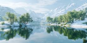 Serene Winter Landscape Picturesque Mountain Lake Reflection