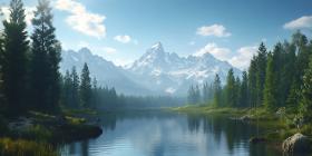 mountain lake mountain landscape lake reflection snow capped mountains evergreen forest nature background scenic view peaceful landscape serene nature mountain scenery natural background landscape photography beautiful landscape outdoor scene nature wallpaper background image desktop background phone background digital art digital painting nature scene mountain vista alpine lake coniferous forest pine trees water reflection calm water mountain range peaks clouds sky blue sky green trees lush greenery natural beauty scenic background environmental art wildlife habitat tranquil scene relaxing landscapeSimilar Photos