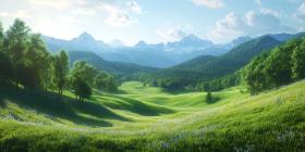 Serene Mountain Landscape Lush Green Valley Scenic Vista Rolling