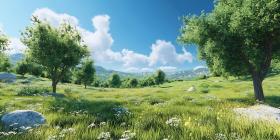 landscape meadow field trees nature scenery summer sun sky clouds green grass hills flowers wildflowers panoramic view outdoor environment scenic rural countryside spring day peaceful tranquil serene calm relaxing beautiful pretty vibrant lush foliage horizon vista idyllic paradise natural background texture farmlandSimilar Photos