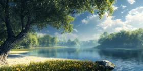 lake river water trees nature landscape scenery scenic view outdoor environment summer sun sky clouds bright peaceful tranquil calm serene relaxing peaceful scene natural beauty foliage vegetation green lush shoreline sandy beach sunlit reflection clear water beautiful idyllic paradise picturesque amazing wonderful gorgeous stunning breathtakingSimilar Photos