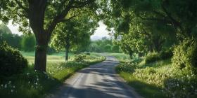 Serene Country Lane A Picturesque Path Through Lush Greenery