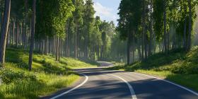 Scenic Forest Road Lush Greenery Winding Asphalt Path
