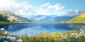 Serene Alpine Lake Majestic Mountain Scenery and Vibrant Flora