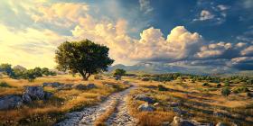 landscape nature scenic countryside field tree clouds sky sun golden hour path road horizon grass plants vegetation rural outdoors environment scenery view panorama beautiful serene peaceful calm tranquil summer daytime bright vibrant colors texture background travel adventure exploration photography image picture artwork art illustrationSimilar Photos