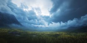 Epic Landscape Dramatic Clouds over Serene Meadow