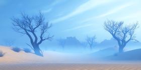 Misty Landscape Two Silhouetted Trees in a Dreamlike Setting