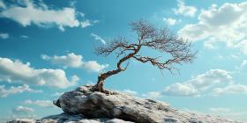 Resilience Lone Tree on Rocky Outcrop Against Vivid Blue Sky Na