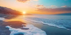 Stunning Sunset over Calm Ocean Waves Coastal Serenity