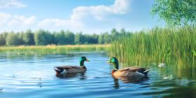 Mallard Ducks on Serene Lake Peaceful Nature Scene