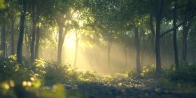 forest sunlight sunrise trees fog mist path woods nature scenic landscape peaceful calm serene tranquil magical mystical atmosphere golden rays light foliage green lush vibrant bright morning dawn outdoor environment woodland natural beauty scenic view countryside park wild wildlife habitat ecosystem flora vegetation woodscape sunbeams sun raysSimilar Photos