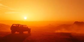 Safari Sunset African Adventure Vehicle Silhouette at Golden Hou