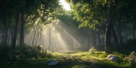 forest trees sunlight sunbeams path nature peaceful tranquil serene woods green leaves canopy light shadow landscape scenery environment outdoor scenic view background texture vibrant lush vegetation rocks ground foliage summer morning afternoon daytime calm relaxing beauty natural scene illustration digital art artwork artSimilar Photos