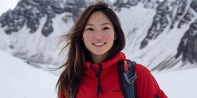woman adventurer mountains snow winter cold travel adventure landscape outdoor nature red jacket backpack smiling happy explorer female scenic view summit trekking hiking climbing journey explore mountain range snow capped peaks athletic sports traveler girl person portrait young woman powerful determined strong confident freedom serene energetic passionateSimilar Photos