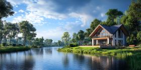 lake house riverfront property dream home serene landscape luxury real estate peaceful setting countryside living waterfront residential architecture modern home design greenery trees blue sky clouds calm water river lake woods tranquility idyllic home exterior house design architecture real estate photography property estate home building landscape nature scenic peaceful relaxing quiet beautiful charming picturesque vista view scene reflection sunlightSimilar Photos