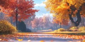 autumn fall foliage trees landscape path pathway red leaves gold leaves nature season pathway sunlight tranquil peaceful vibrant colors golden hour colorful leaves autumnal forest woods scenery fall colors autumn leaves painting artwork art fall foliage nature scene rustic serene picturesque landscape painting fall landscape autumn landscape outdoor environment season change color beautiful scenicSimilar Photos