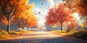 autumn fall foliage landscape trees leaves path road sunlight nature scenic beautiful vibrant colors orange red golden yellow season october november december park forest woodland woods countryside rural outdoor environment scenery view vista photography artwork digital art illustration painting artistic creative fall colors autumn leaves sunbeamsSimilar Photos