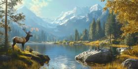 elk deer wildlife mountain valley lake river autumn fall leaves trees forest landscape nature scenic scenic view mountain range peaceful serene calm tranquil wildlife photography animal photography nature photography digital art artwork painting illustration mountain landscape autumn landscape fall landscape wildlife art artistic beautiful majestic elegant grand spectacular awe-inspiringSimilar Photos