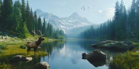Majestic Elk in Mountain Lake Serenity Scenic Nature Photography
