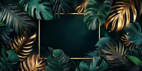 Luxurious Tropical Frame Elegant Green Gold Foliage