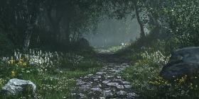 forest path mist fog trees leaves green vegetation nature scene landscape scenic view background texture rock stream water rain mysterious serene tranquil peaceful calm ambient atmosphere lush overgrown woodland woods dark shadow light magical fantasy environment illustration digital art artwork painting photography imageSimilar Photos