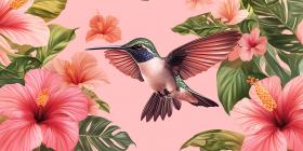 hummingbird hibiscus flowers tropical floral pink watercolor illustration nature bird botanical design background texture pattern elegant serene aesthetic wildlife avian plant blossom foliage leaves artistic artwork painting graphics visual image pretty beautiful vibrant colorful tropical flowers pink hibiscus hummingbird in flight floral design nature background watercolor artSimilar Photos