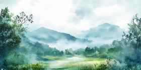 watercolor painting landscape painting mountain landscape misty mountains foggy landscape nature scenery serene landscape peaceful landscape green forest lush greenery valley view artistic background nature background scenic view watercolour art painting illustration digital painting background texture environment scenery nature mountain forest trees valley fog mist clouds sky green blue calm tranquil peaceful serenity relaxing scenic beautiful artisticSimilar Photos