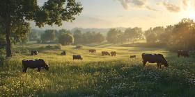 Stunning Pastoral Scene Cattle Grazing at Sunset