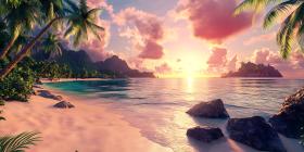 beach sunset tropical ocean palm trees paradise serene peaceful calm relaxing escape vacation holiday travel nature landscape seascape water sand sky clouds pink orange golden hour rocks waves shore coast tropical beach island sunset view beach scene ocean view summer warm vibrant idyllic tranquility peaceful scene beautiful scenic stunning breathtaking amazingSimilar Photos