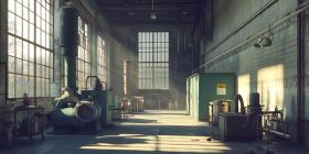 Eerie Industrial Interior Abandoned Factory Hallway Photography