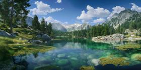 Stunning Alpine Lake Picturesque Mountain Scenery Crystal Clear
