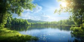 Serene Lake Landscape Picturesque Nature Scene with Lush Greener
