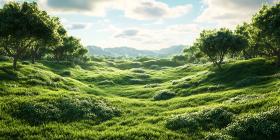 Lush Green Landscape Serene Nature Scene Rolling Hills and Tranq