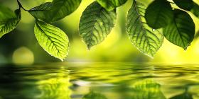 Vibrant Green Leaves Reflecting in Calm Water A Serene Nature Sc