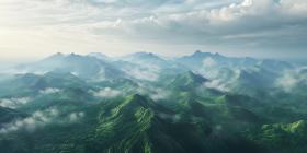 Misty Mountain Landscape An Aerial View of Lush Green Hills