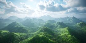 Lush Green Mountain Range Aerial View of a Verdant Landscape