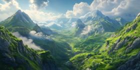 mountain valley landscape nature scenic mountains clouds sky sun green vegetation lush hills peaks aerial view vista panorama scenery view background beautiful serene tranquil peaceful majestic dramatic bright sunlight overcast atmosphere environment outdoor wilderness wild untamed natural scenic view breathtaking amazing stunning paradise idyllicSimilar Photos
