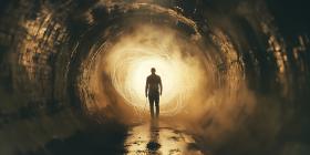 tunnel light dark journey figure silhouette hope discovery path way golden glow radiant spiritual mystical transformation perseverance faith inner light search exploration solitary lone man person walking movement texture walls dramatic evocative atmosphere dust motes golden light dark tunnel self-discovery hopeful determined passage abstract art conceptual artSimilar Photos